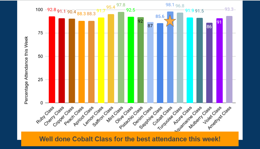 Attendance continues to be a key focus for us, and I am pleased to announce that Amethyst Class won last term’s attendance award, having achieved the greatest number of weeks with the best attendance. Well done to all pupils and families in Amethyst for this excellent commitment.