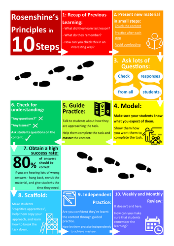 In addition, when developing our curriculum, it was collectively agreed that Rosenshine's Ten Principles should underpin all curriculum learning. Lessons begin by making sure pupils can recall and understand the previous sessions learning. New learning is then presented in manageable steps with any relevant links to the previous learning made at the same time. Questions are used to assist our learners with examining and developing their understanding. Teachers model learning expectations so that pupils understand what they are and then guide the students through the learning process. As this is happening, teachers check on how well pupils are learning; rectifying any misconceptions and providing sufficient opportunities to test their knowledge and skills. This process of guided practice, checking and testing for mastery continues until the teacher is satisfied that the majority of learners have mastered the skills and knowledge being taught. Support is provided to maximise mastery and ultimately the pupils are then asked to independently apply their learning. Through autonomy, the learning is more likely to embed. Further activities, tests and quizzes are used on a regular basis to ensure that our children not only grasp new skills and knowledge, but the learning becomes committed to the long-term memory.