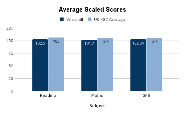 Every year, pupils are assessed on their attainment; below are Whitehill Primary School's results compared to the national headline results of the assessment of Key Stage 2.